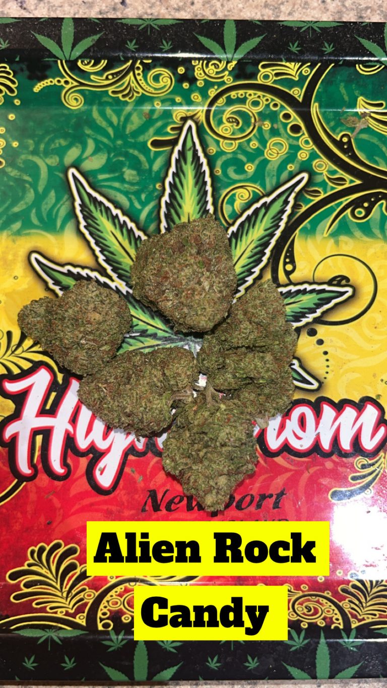 Alien Rock Candy is an indica strain with an aroma as sweet as the name suggests. This Sour Dubble and Tahoe Alien cross captures a fruity, citrus aroma that carries through until the exhale. Full relaxation of the mind and body make this strain ideal for the end of an active or stressful day, with a heaviness that segueways nicely to sleep. This heavy handed strain has a 27% THC content.