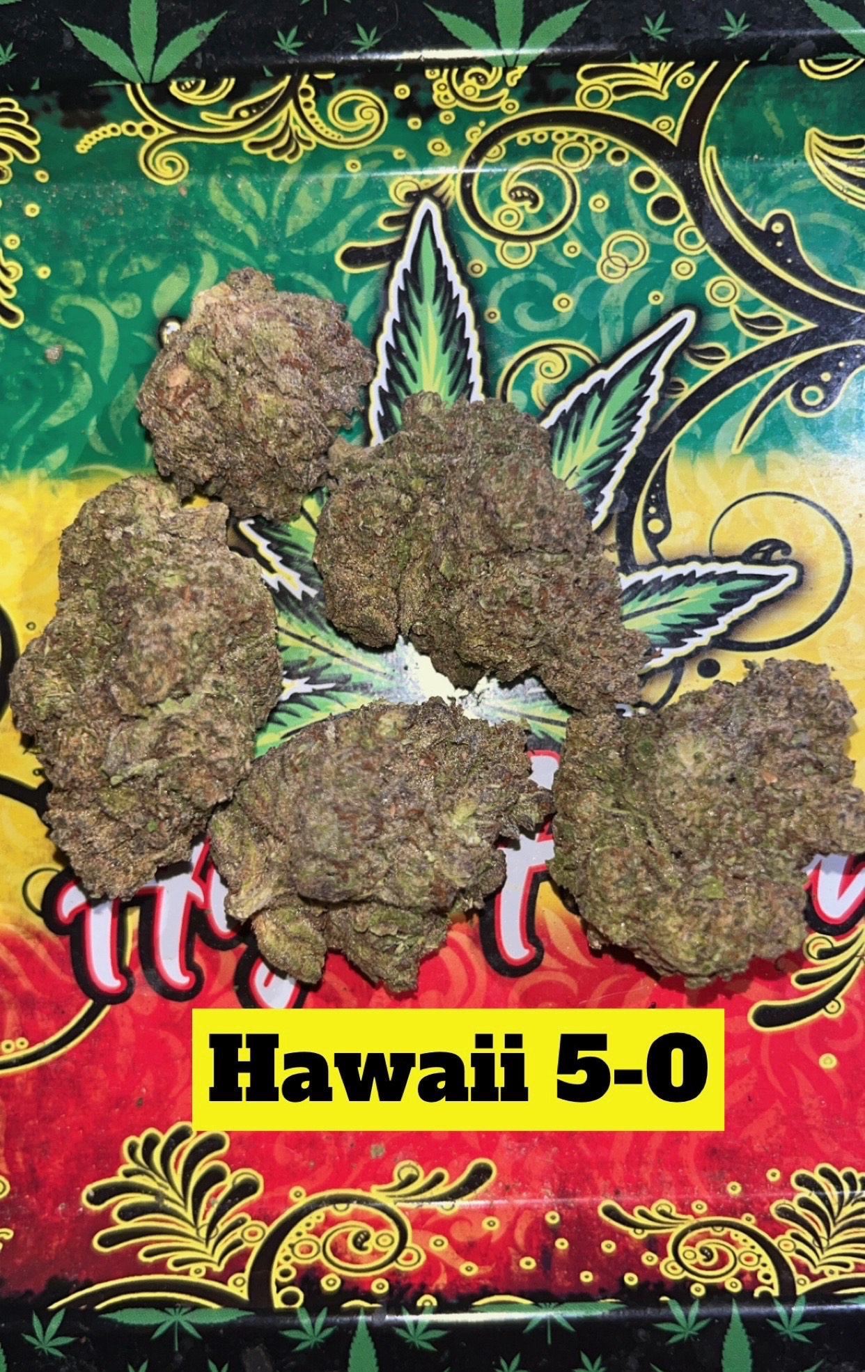 Hawaii 5-0 is an insanely popular hugely potent 23%THC content hybrid. This strain is a cross between Hawaiian Skunk and Northern Lights. This bud is ideal for daily use as it offers a potent cerebral head high with euphoria and an influx of energy that melts into a couch locked body stone that still leaves you functional. The taste of this power house is strong and hashy with a syrup sweet aftertaste.