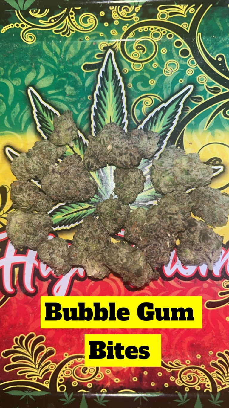 Bubble Gum Bites is a popular indica strain with a 22% THC content strain also known as Bubble Gum. This strain produces a body numbing high that erases your pain and leaves your mind stimulated. Bubble Gum Bites features a flavor profile reminiscent of its namesake, with bubble gum and sweet floral flavors bursting through.
