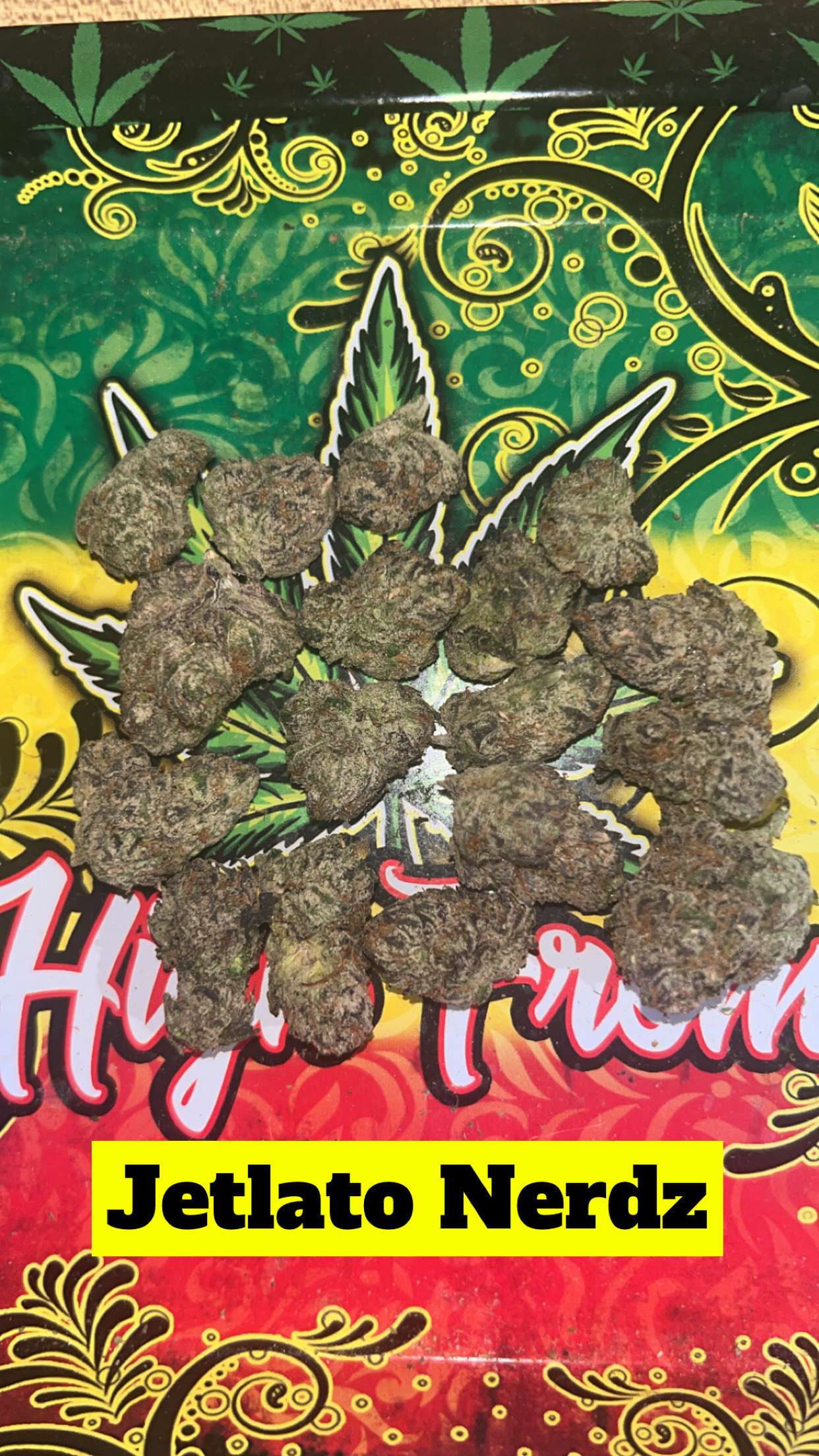 Jetlato Nerdz is an evenly balanced hybrid strain made by crossing Hi-Octane and Jet Fuel strains. The tase of Jetlato Nerdz is both spicy and sweet, with hints of creamy, citrusy lemon gelato accented by pungent and peppery diesel. This strain provides a high that will settle in quickly, beginning as a tingle felt behind the eyes and in the sides of the forehead. This tingle will begin to inch its way forward, numbing the brain and filling you with a sense of heady buzzy euphoria while providing a large 29% THC content.